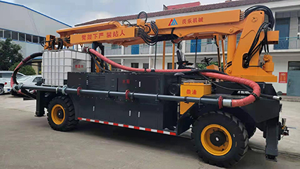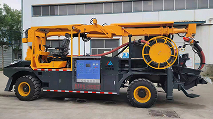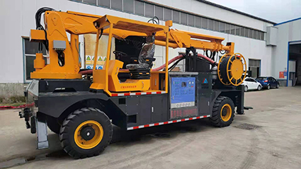 混凝土濕噴臺(tái)車包括液壓噴射機(jī)械手、噴射機(jī)(泵)、外加劑及其添加設(shè)備和電纜卷盤、空壓機(jī)等,都安裝在同一機(jī)械底盤上,是一臺(tái)集混凝土泵送、外加劑添加、混凝土噴射等多項(xiàng)作業(yè)于一體的組合設(shè)備?;炷翝駠娕_(tái)車的各組成系統(tǒng)在整體設(shè)計(jì)上統(tǒng)一考慮了其布局的合理性,做到了易于維修,并具有易于清洗的特點(diǎn)。