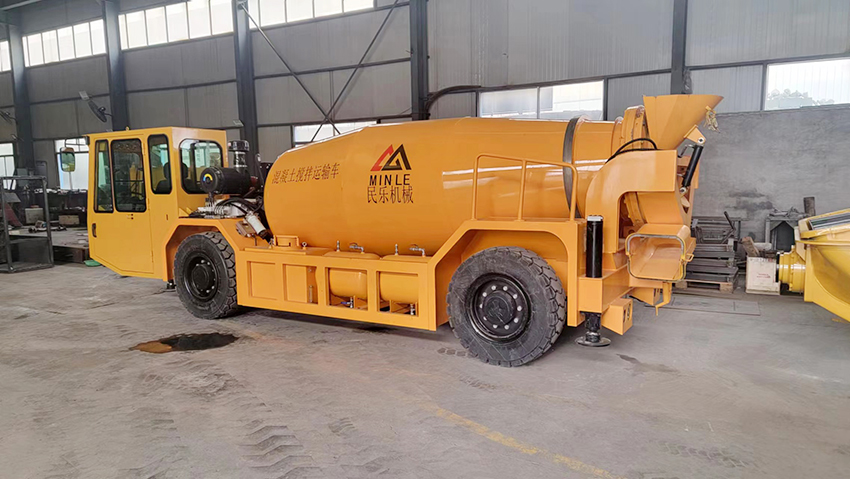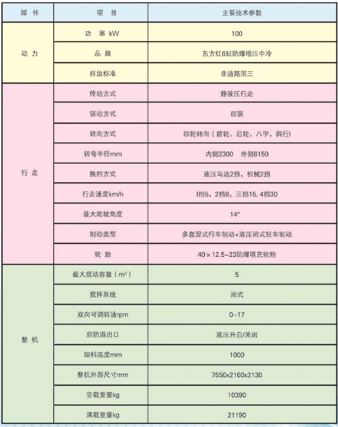 礦用防爆柴油機無軌膠輪車/混凝土攪拌運輸車主要用于煤礦井下巷道中作業(yè),具機動性強、體積小,車身窄、高度低等特點,能同時完成攪拌和運輸作業(yè)。該車以防爆柴油機為動力,具有維護方便、性能等特點。該車采用靜液壓傳動方式,傳動效率高、油耗低、簡單可靠;該整車結構新穎、性能優(yōu)良、運輸效率高,是大中型煤礦及有瓦斯和粉塵爆炸危險環(huán)境的混凝土攪拌輸送車產品之一。具體特點有: