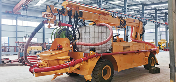 3、同步速凝劑添加采用進口軟管泵,液壓馬達驅(qū)動,電比例流量閥調(diào)節(jié)轉(zhuǎn)速以達到調(diào)節(jié)流量的目的,液晶顯示和觸屏設(shè)置速凝劑添加比例,且在屏幕和器上均可隨時修改設(shè)置,速凝劑的添加量緊隨砼的泵送量同步變化而保持添加比例按設(shè)定值運行,這些均由可編程控制器控制。由此可實現(xiàn)對速凝劑添加量的控制,以達到效果,回彈和節(jié)約速凝劑的目的。機器上配有容積為1.0m³的耐腐蝕塑料材質(zhì)的速凝劑容器,速凝劑軟管泵也可從外部容器中抽吸速凝劑,根據(jù)實際情況可方便地進行切換。
